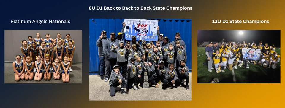 Our football and cheer teams have proudly earned multiple State, Regional, and National Championships, proving that with hard work, dedication, and passion, anything is possible. Whether your child is stepping onto the field for the first time or aiming for the next level, we are here to support, guide, and push them toward greatness.
